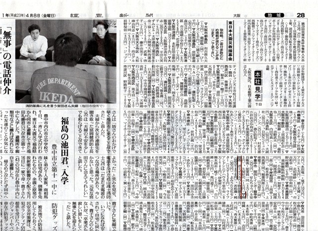 我々ボーイスカウト吹田第9団は、スカウト、保護者、指導者などから義援金を募ると共に、3月26日(土)にスカウトである幼稚園年長の子ども達から大学生、そして指導者が活動拠点である千里山3ヶ所にて、街頭募金活動を行いました。