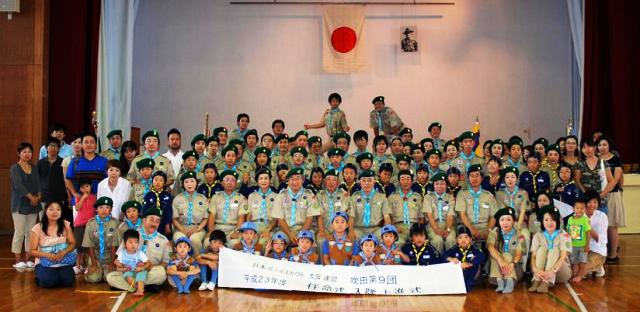 9月4日(日)に吹田第9団は任命式、入隊・上進式を、千里第三小学校で行いました。