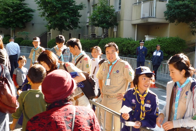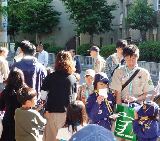 リーダーはもちろんカブ隊、ボーイ隊のスカウトにも手伝ってもらい、あっという間に多くのチラシを受け取ってもらいました。
