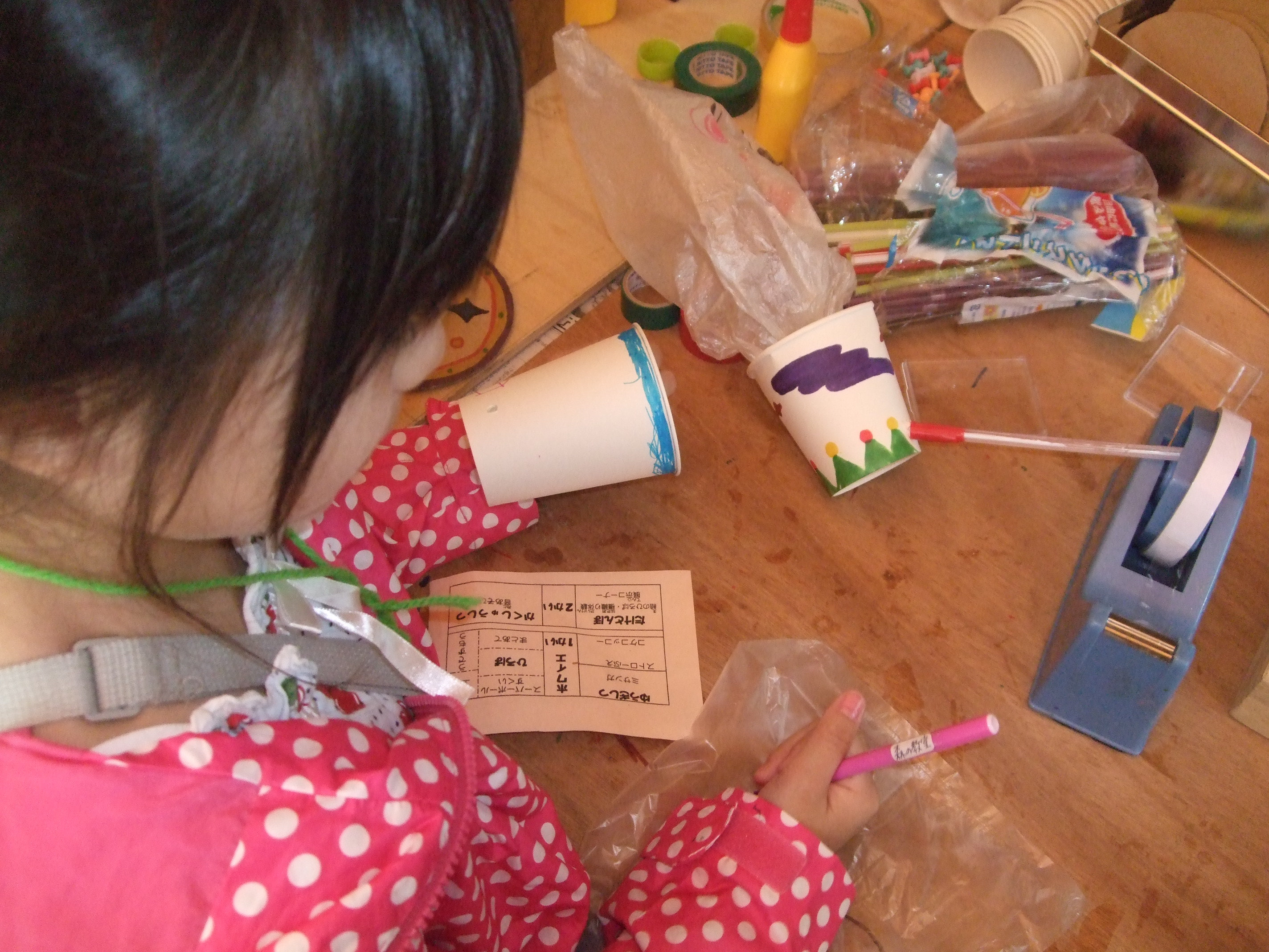 勢いよくストローをふくとカップからビニールぶくろがでてきたら大成功!