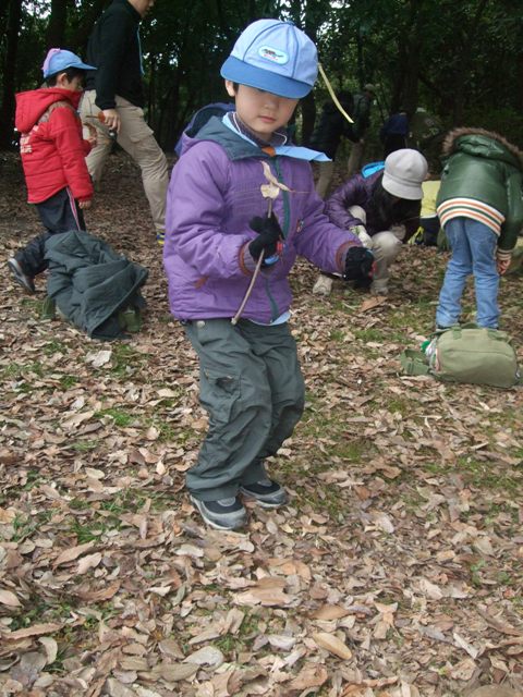森の教室は、ドングリや松ぼっくり、木の枝などで工作をします。