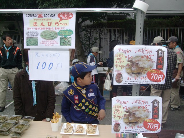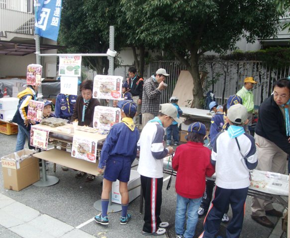 ビーバースカウト、カブスカウトに販売をさせると金銭感覚や参加者意識が高まるだろうと思う半面、売り上げも上がるのでは・・・、と団委員、隊リーダーだけでなく、スカウトも参加しました。