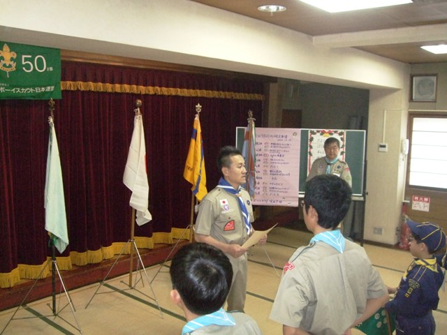 今回は団委員、隊リーダーが吹田第6団50周年記念式典(おめでとう!)と重なり、分散していました。