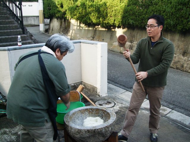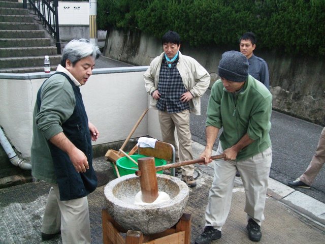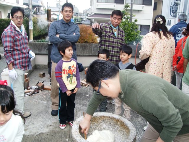 会館ご近所の方にはご迷惑をおかけするので、つきあがったおもちをお配りしています。