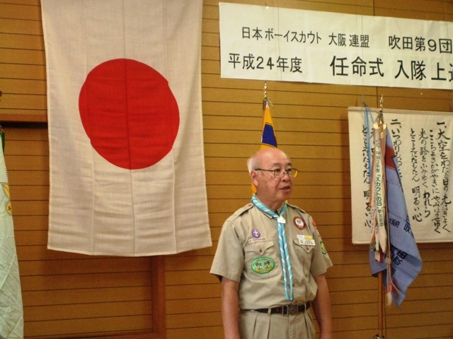 9月2日(日)に千里第三小学校(千里山西2丁目)にて、吹田第9団の指導者任命式と各隊入隊上進式が行われました。