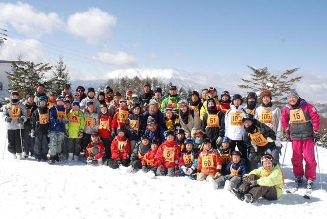 2日目の昼、きそふくしまスキー場ゲレンデで全員集合(12日)